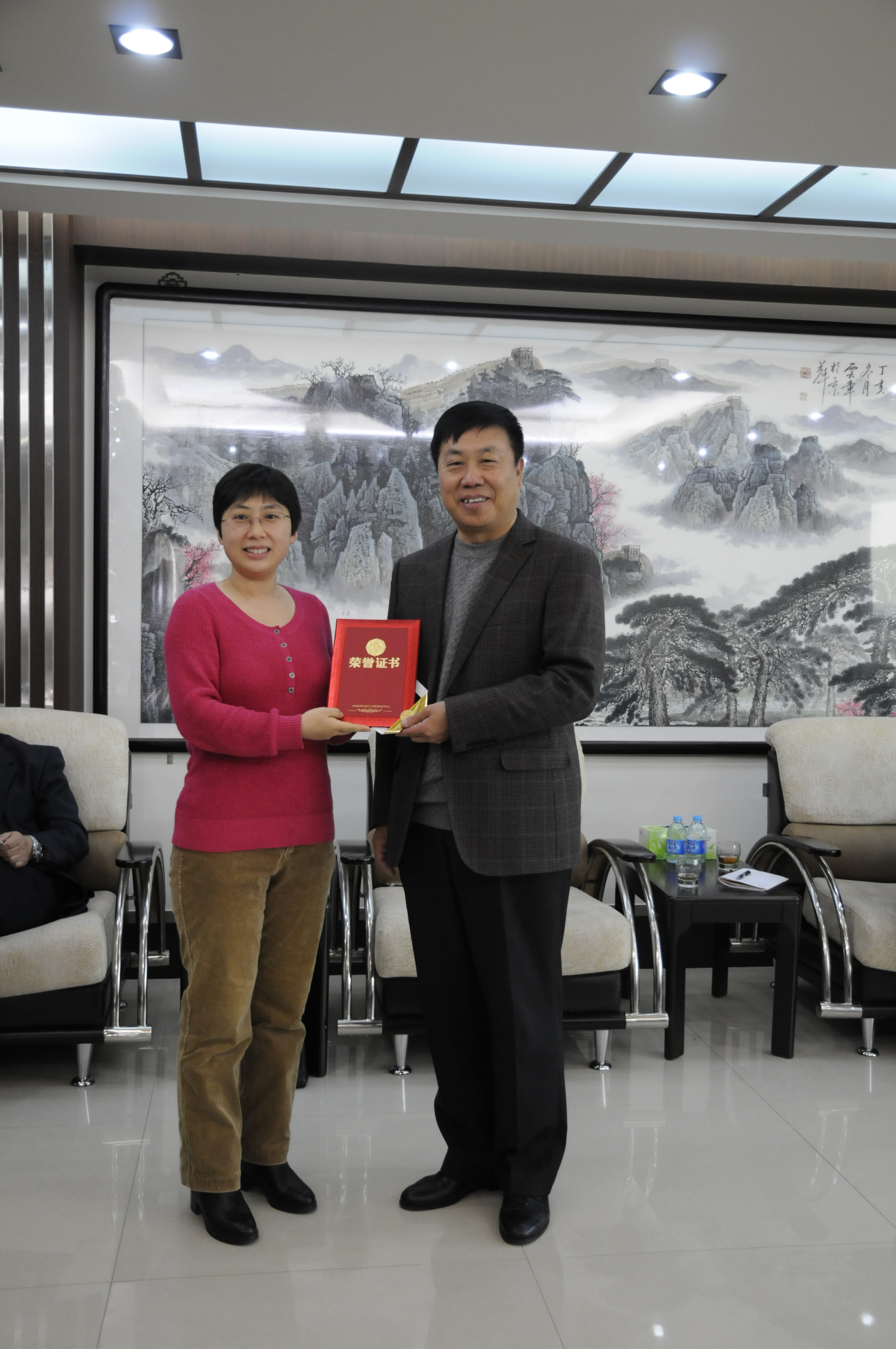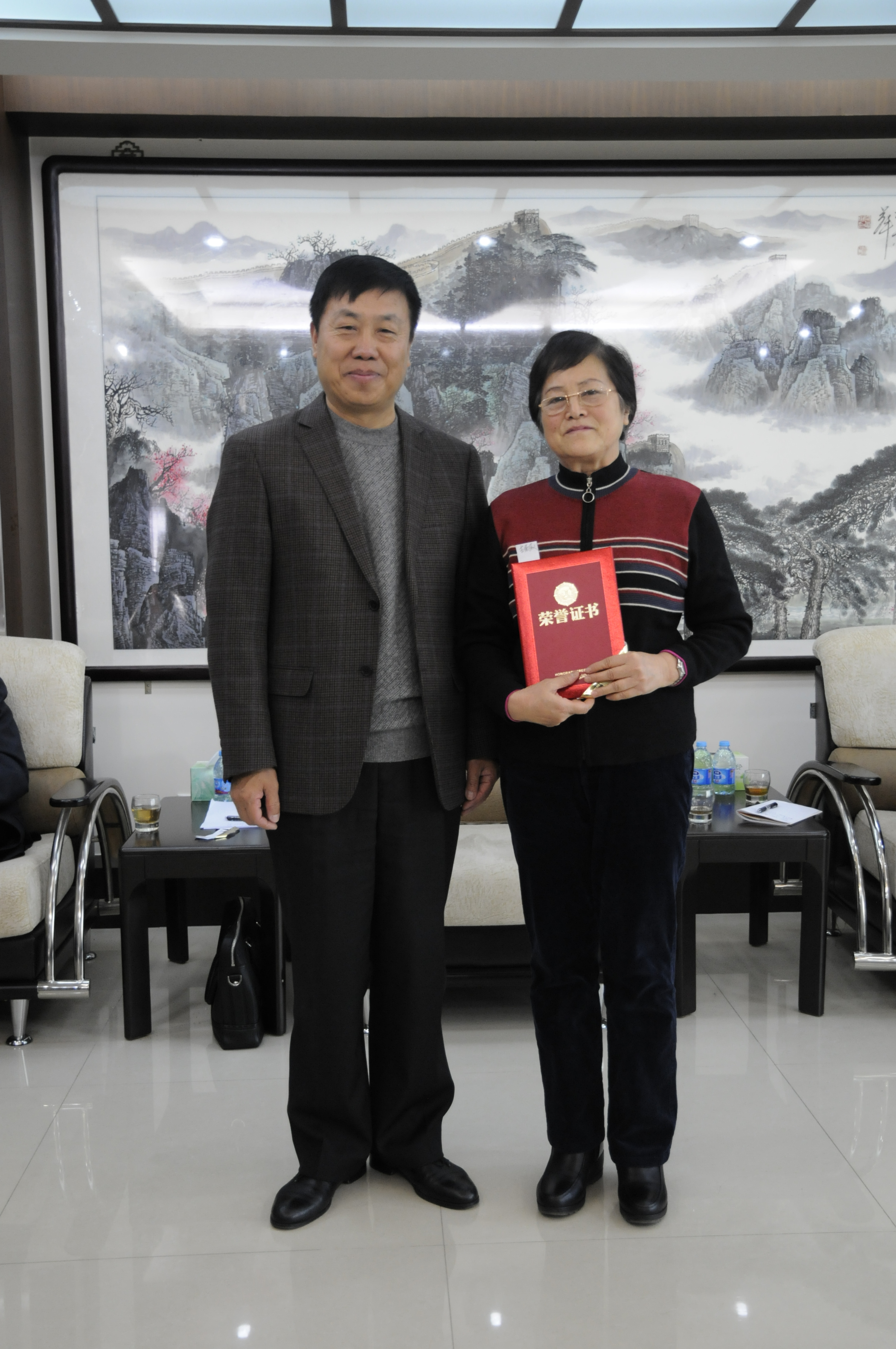 張占英書記向鑫稅廣通稅務事務所董事長、黨支部書記王進頒發優秀黨員榮譽證書