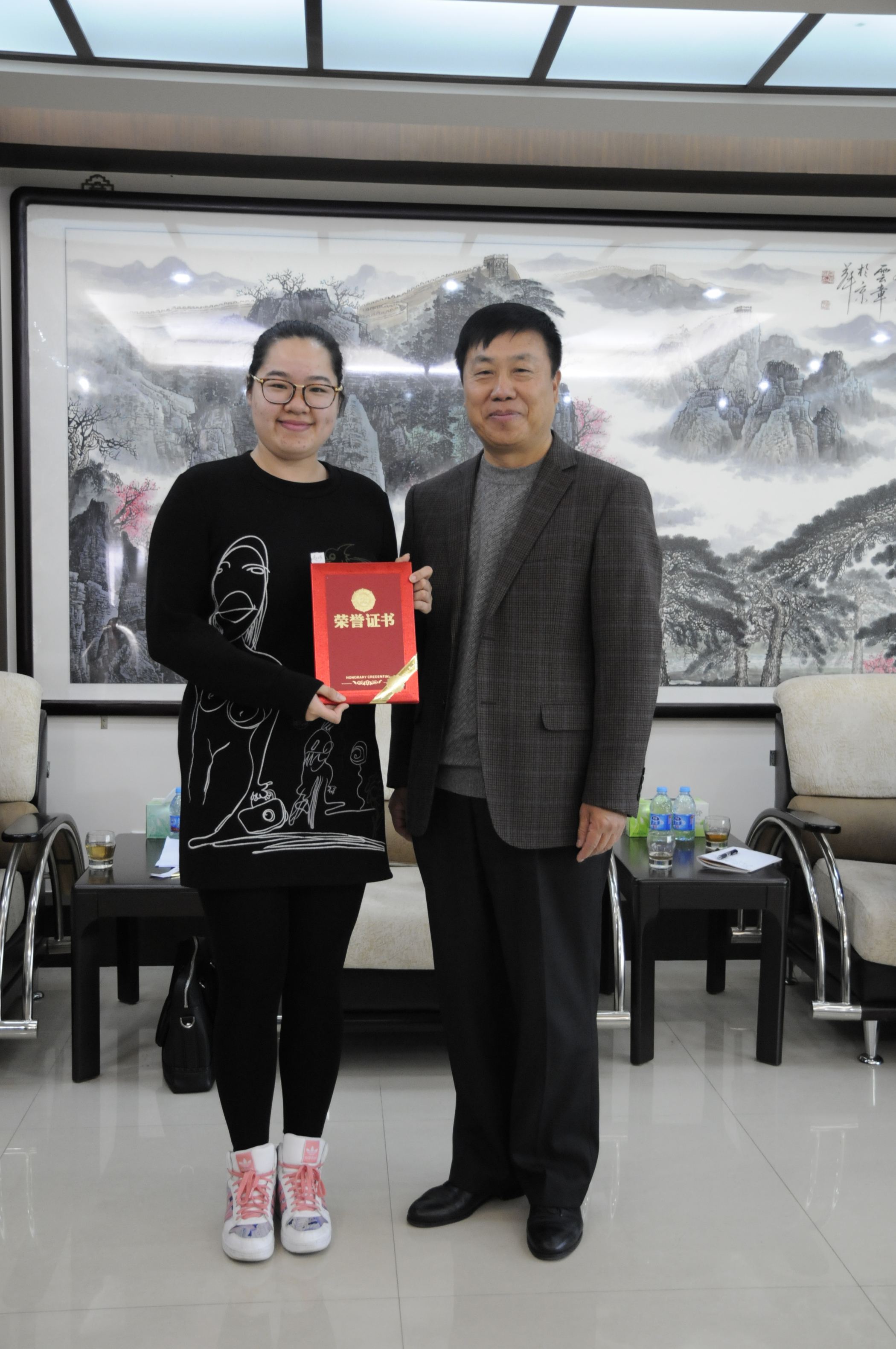 張占英書記向市稅協秘書處出納員趙玥頒發優秀黨員榮譽證書