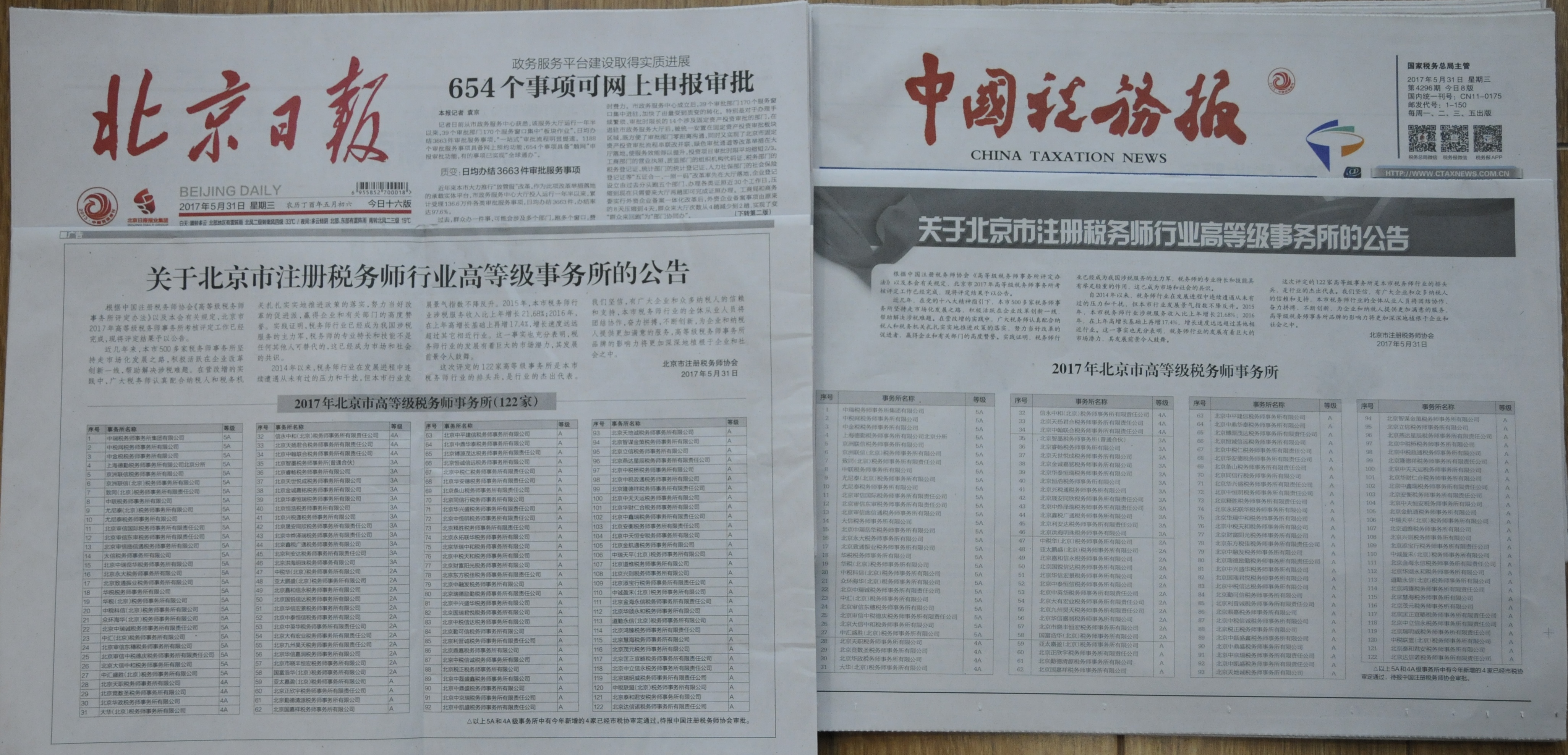 日前,北京市注冊稅務師協會評定出2017年高等級稅務師事務所122家(包括上報中稅協審定的4家4A和5A事務所),在三屆十次理事擴大會議上予以隆重表彰,并在中國稅務報、北京日報刊登公告,給予廣泛宣傳推介。