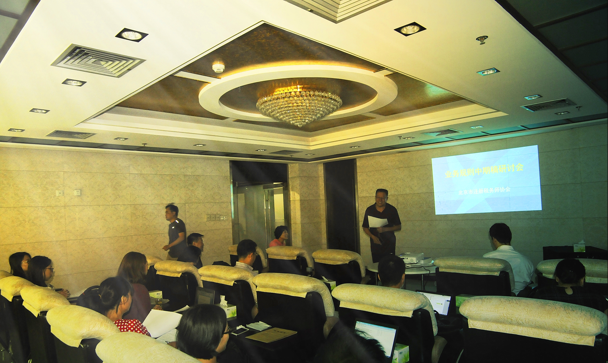 中期稿研討會由各項目組負責人對所制定業務規則進行文稿演示和重點講解,郭洪榮副會長根據各行業特點、規則的制定背景及相關要求,對內容進行逐條點評。他特別指出:在強調規則條款規范化的同時,一定要突出各規則項目的個性化差異,規范統一中要突出行業特點。研討中,郭洪榮副會長針對各項規則的具體情況,及時提出各項意見建議,幫助項目組拓展思路,對業務規則的進一步修改和完善起到了重要的指導作用。各項目組定于9月10前將修改后的業務規則中期稿如期交付中稅協。