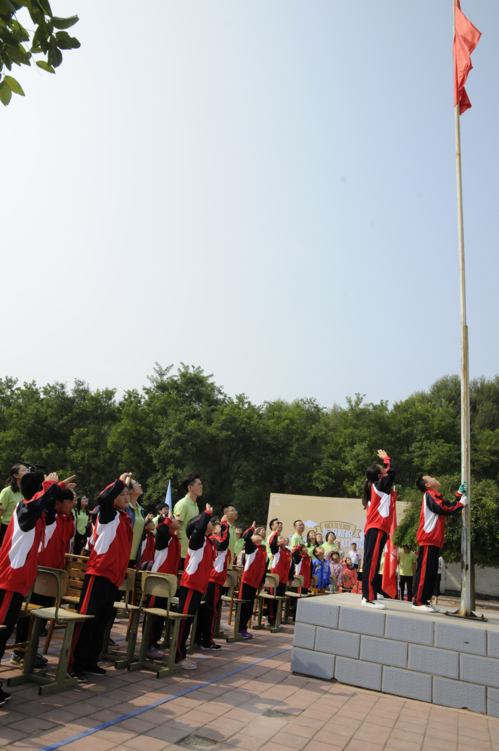 十時整,活動正式開始,師生與員工肅立,高唱國歌,注目國旗冉冉升起。在揭牌儀式上,鄉、村負責人及紅石砬小學校長分別感言,對東審機構秉持大愛之心,創立“蒲公英基金”,首選紅石砬小學為助學基地表示感謝。東審保障中心總經理劉青在講話時深情地表示,在孩子們成長的路上,東審愿意一直為他們保駕護航!