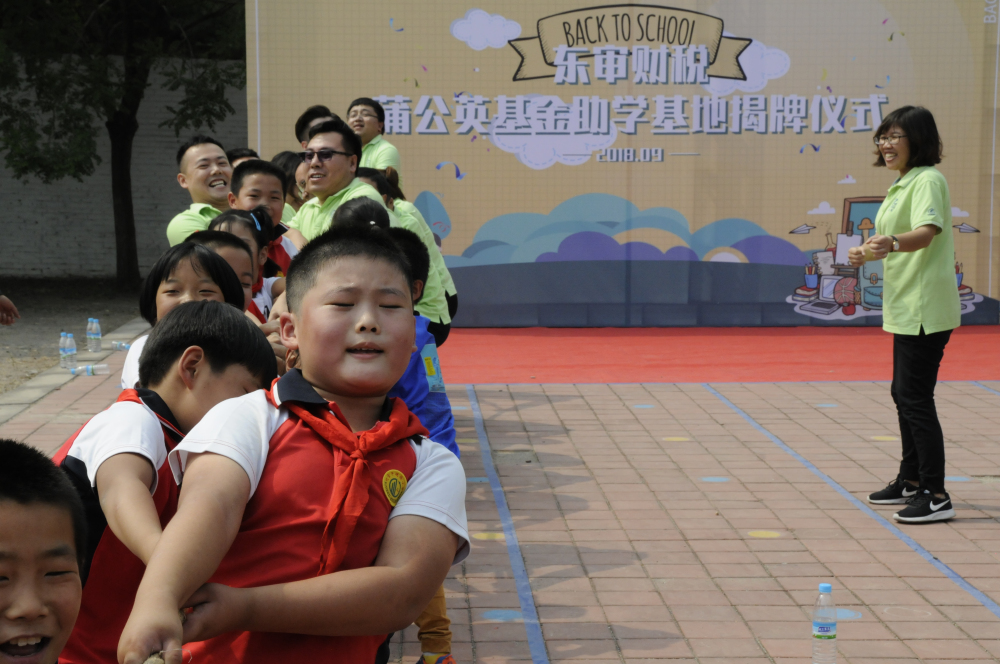 活動中,紅石砬小學生們表演了鏗鏘有力的武術健身操,并同東審的大朋友們一起參加了滾鐵環、扔沙包、羽毛球拍持球接力跑、拔河等項目的趣味運動會。自始至終,在北京稅務師同心服務團的旗幟下,在東審財稅旗幟下,孩子們笑得十分開心。員工們付出了真心、愛心,也體味到了童心和同心。