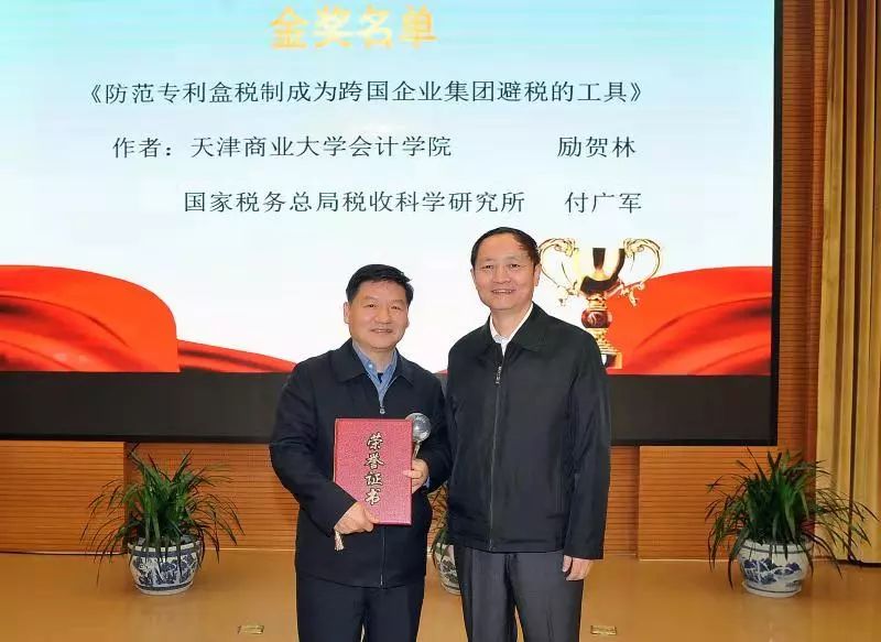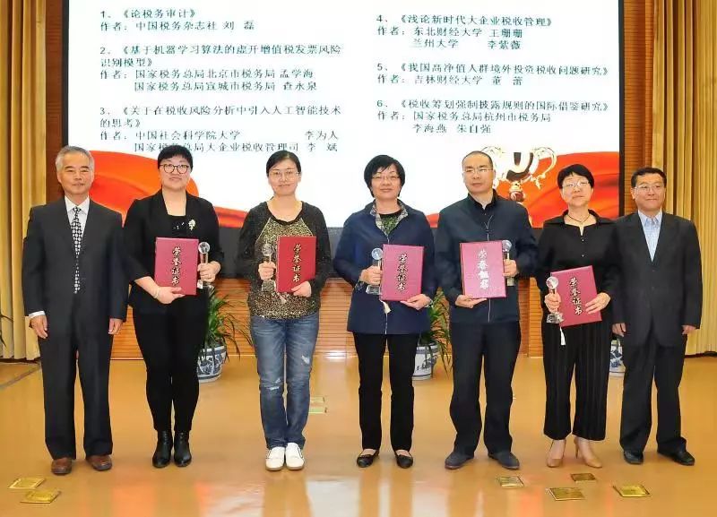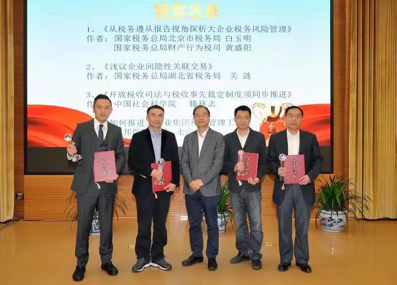 頒獎典禮上,全國政協委員、國家稅務總局原副局長張志勇為金獎獲獎者頒獎,國家稅務總局大企業稅收管理司司長繆慧頻為銀獎獲獎代表頒獎,北京市國家稅務局原副局長程永昌和中國人民大學財政金融學院副院長、中國大企業稅收研究所專家指導委員會主任委員岳樹民教授,共同為銅獎獲獎代表頒獎。