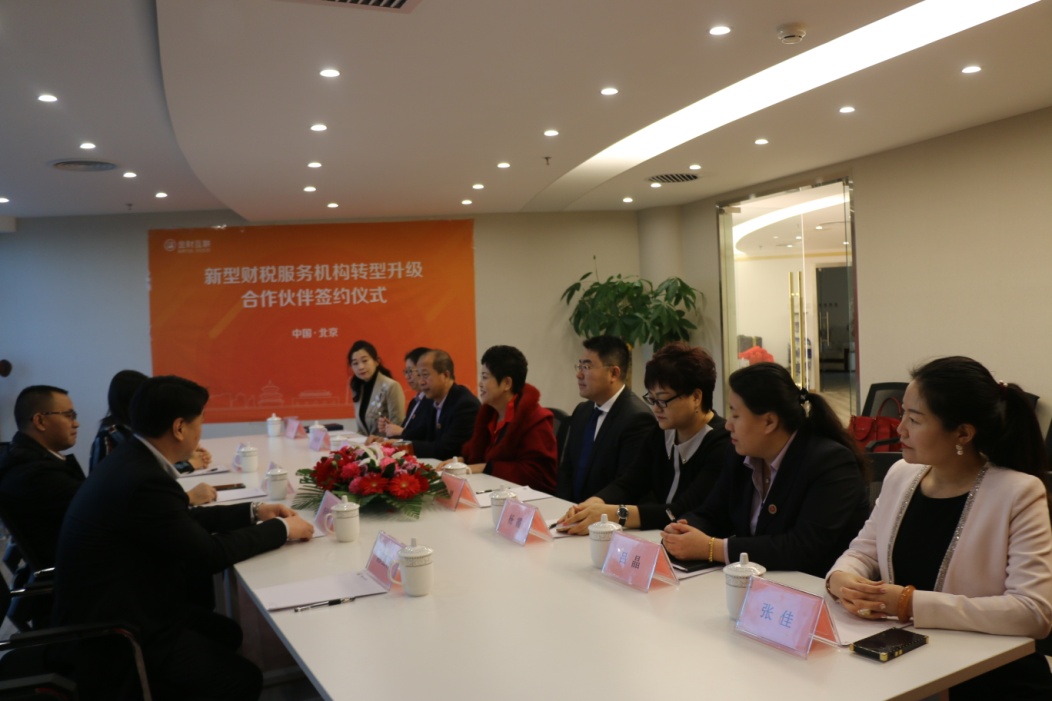 2018年12月27日,北京金誠嘉銘稅務師事務所有限公司與金財互聯數據服務有限公司“新型財稅服務機構轉型升級合作伙伴”簽約儀式在金誠立信總部隆重舉行。金財互聯董事長徐正軍及副總裁李偉力一行,金誠嘉銘董事長董麗清及總裁劉堃攜管理層出席了簽約儀式。