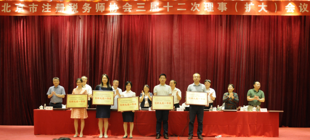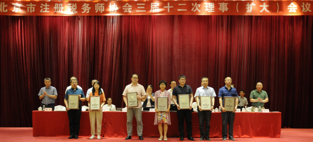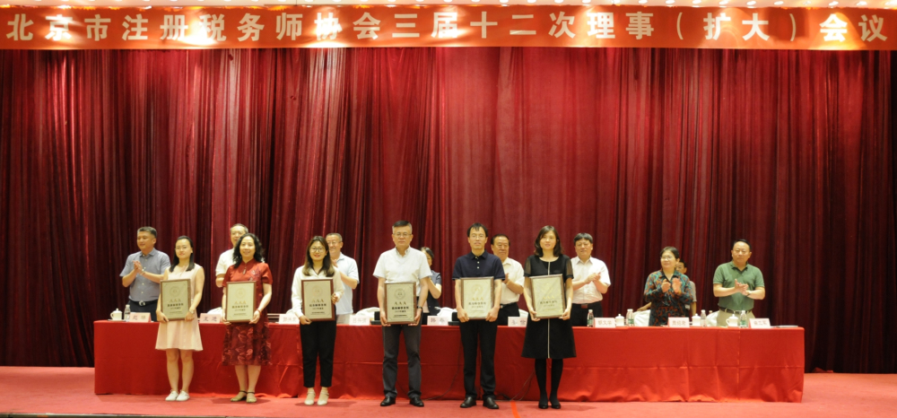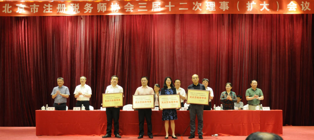 呂興渭副會(huì)長(zhǎng)向大會(huì)通報(bào)北京稅務(wù)師行業(yè)2019年高等級(jí)稅務(wù)師事務(wù)所認(rèn)定情況,宣布行業(yè)特別貢獻(xiàn)獎(jiǎng)、創(chuàng)新發(fā)展獎(jiǎng)獎(jiǎng)勵(lì)決定及獲獎(jiǎng)事務(wù)所名單。在輕快的樂(lè)曲聲中,協(xié)會(huì)領(lǐng)導(dǎo)向新評(píng)定的高等級(jí)稅務(wù)師事務(wù)所和獲得特別貢獻(xiàn)獎(jiǎng)、創(chuàng)新發(fā)展獎(jiǎng)的高等級(jí)稅務(wù)師事務(wù)所分別授牌。
