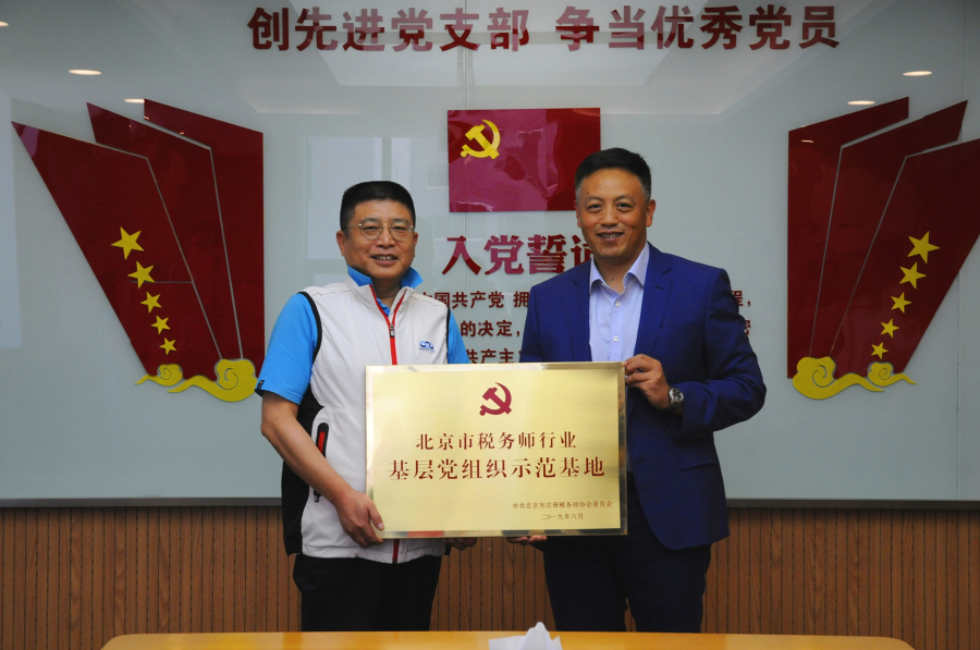 7月1日,在慶祝中國共產黨成立98周年之際,北京市稅協黨委向致同(北京)稅務師事務所黨支部鄭重頒發“基層黨組織示范基地”稱號。