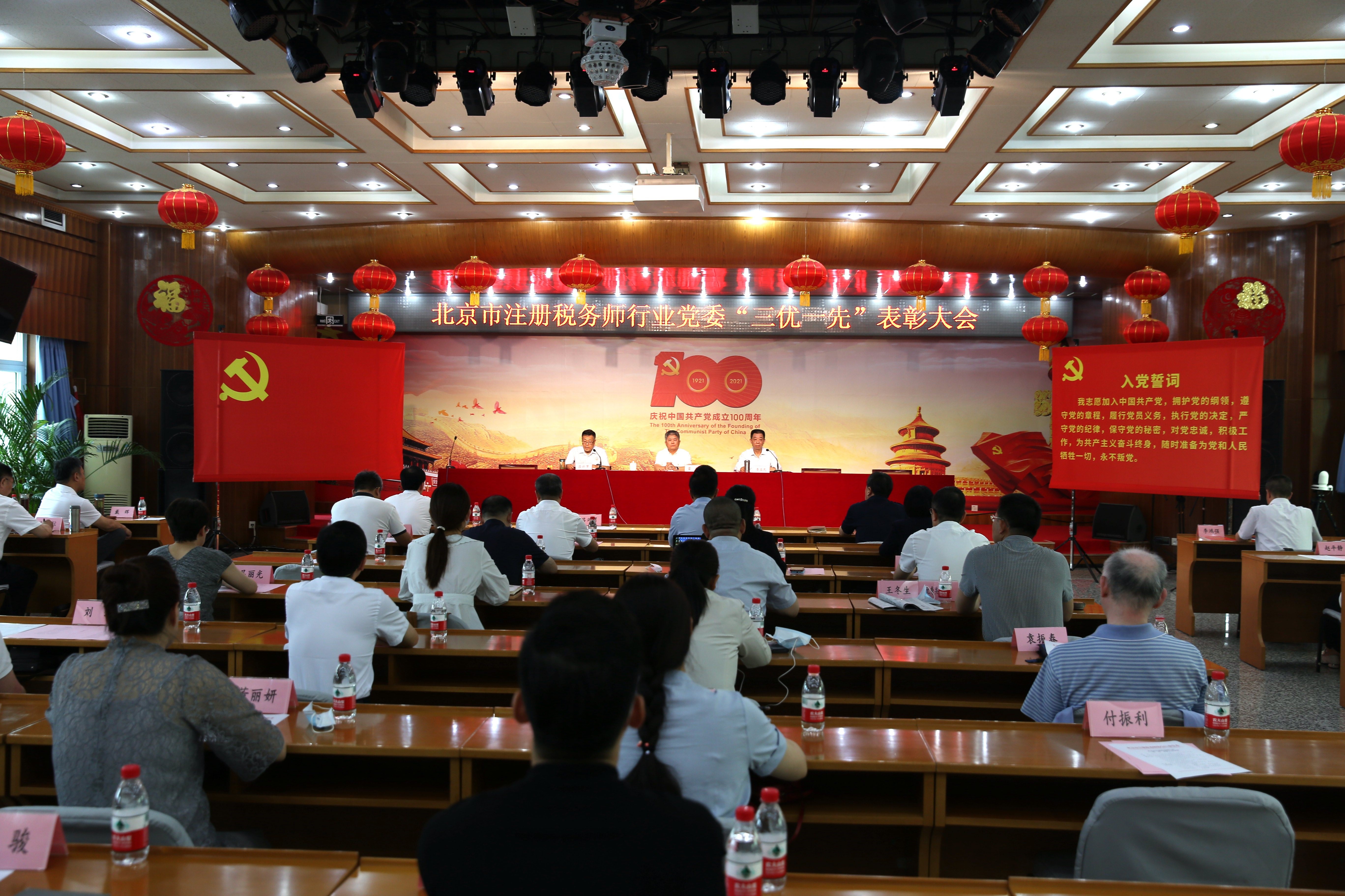 會上,黨員同志們面對黨旗,進行了新黨員入黨誓詞宣誓暨老黨員重溫入黨誓詞儀式。隨后,會議宣讀了《中共北京市注冊稅務師行業委員會關于表彰行業優秀共產黨員、優秀黨務工作者、優秀黨支部書記和先進基層黨組織的決定》,表彰47名“優秀共產黨員”、10名“優秀黨務工作者”、10名“優秀黨支部書記”和10家“先進基層黨組織”。