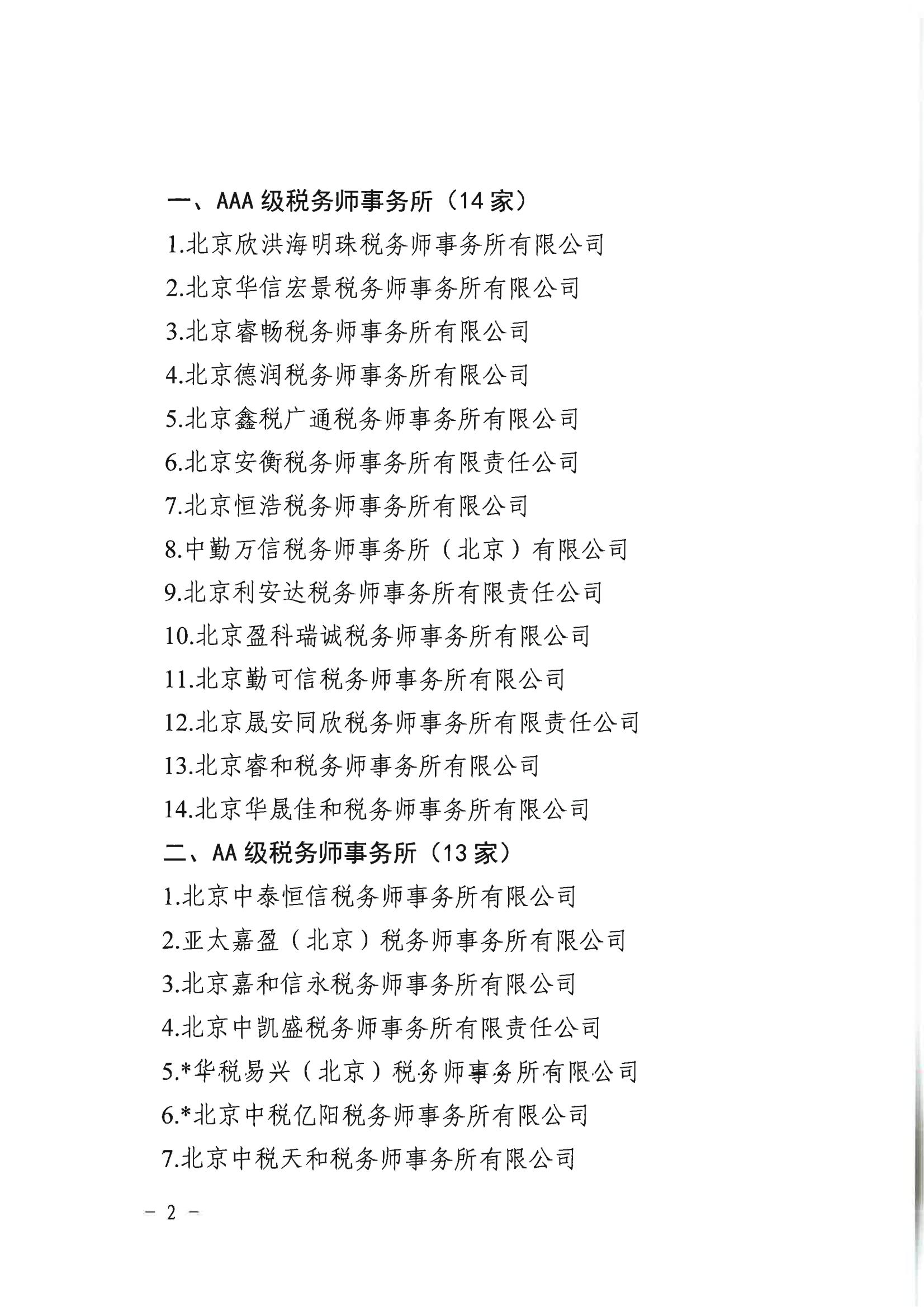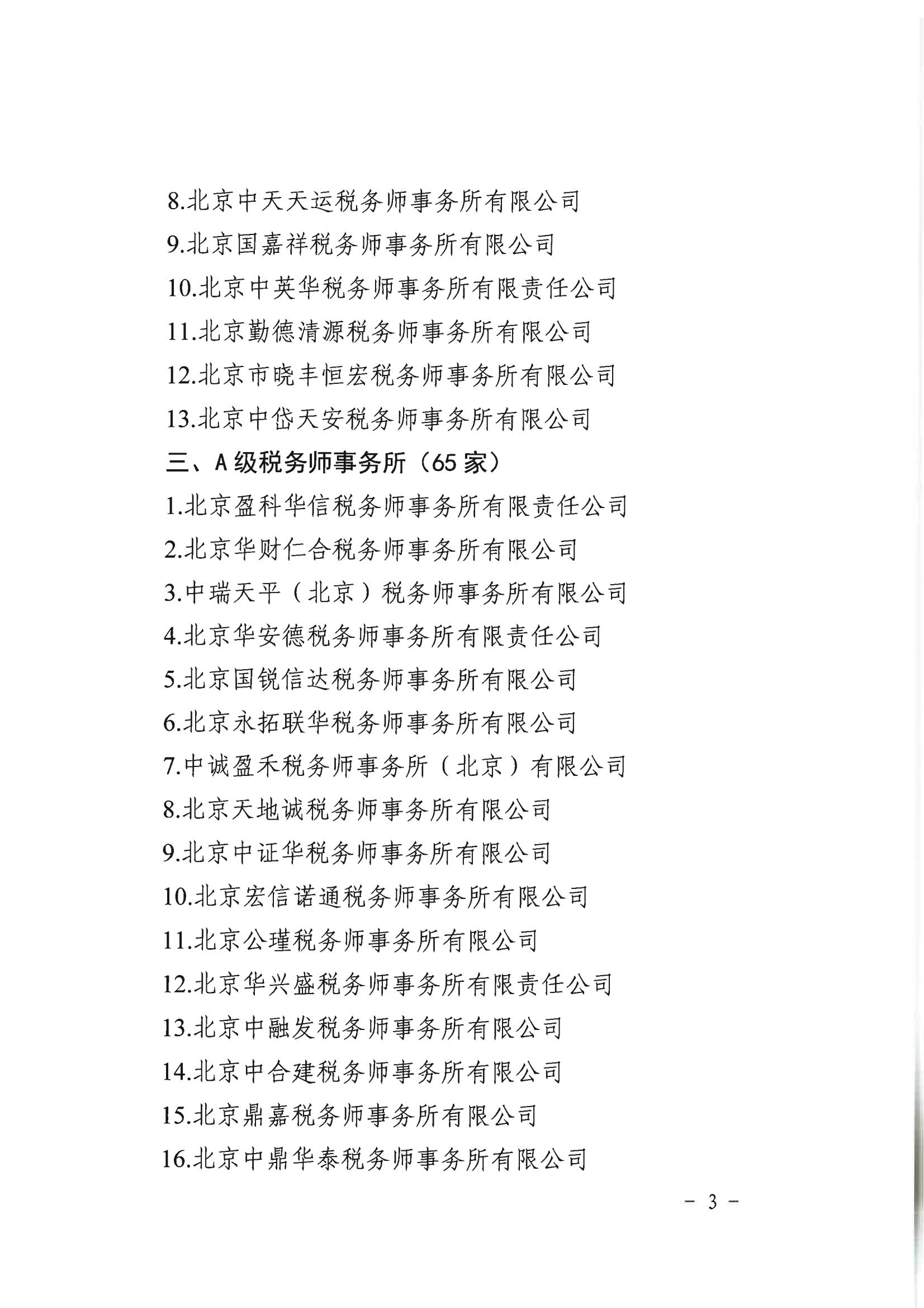 北京市注冊稅務師協會關于2021年3A級以下稅務師事務所認定情況的公告